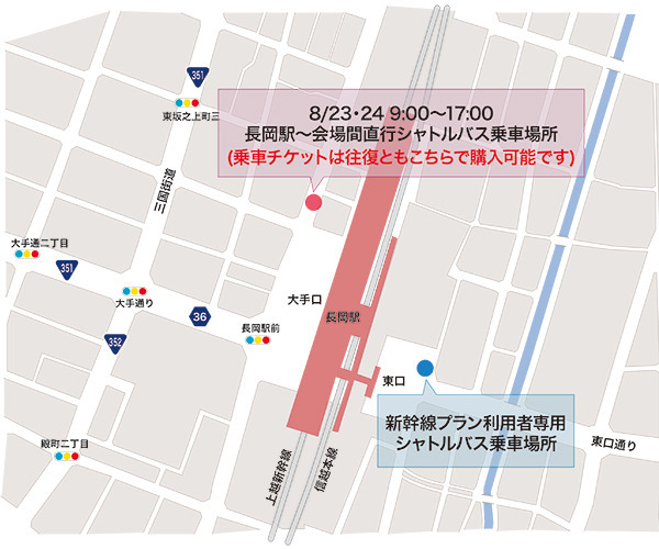 公演日当日、長岡駅 ~ 会場間の直通シャトルバスを運行いたします。